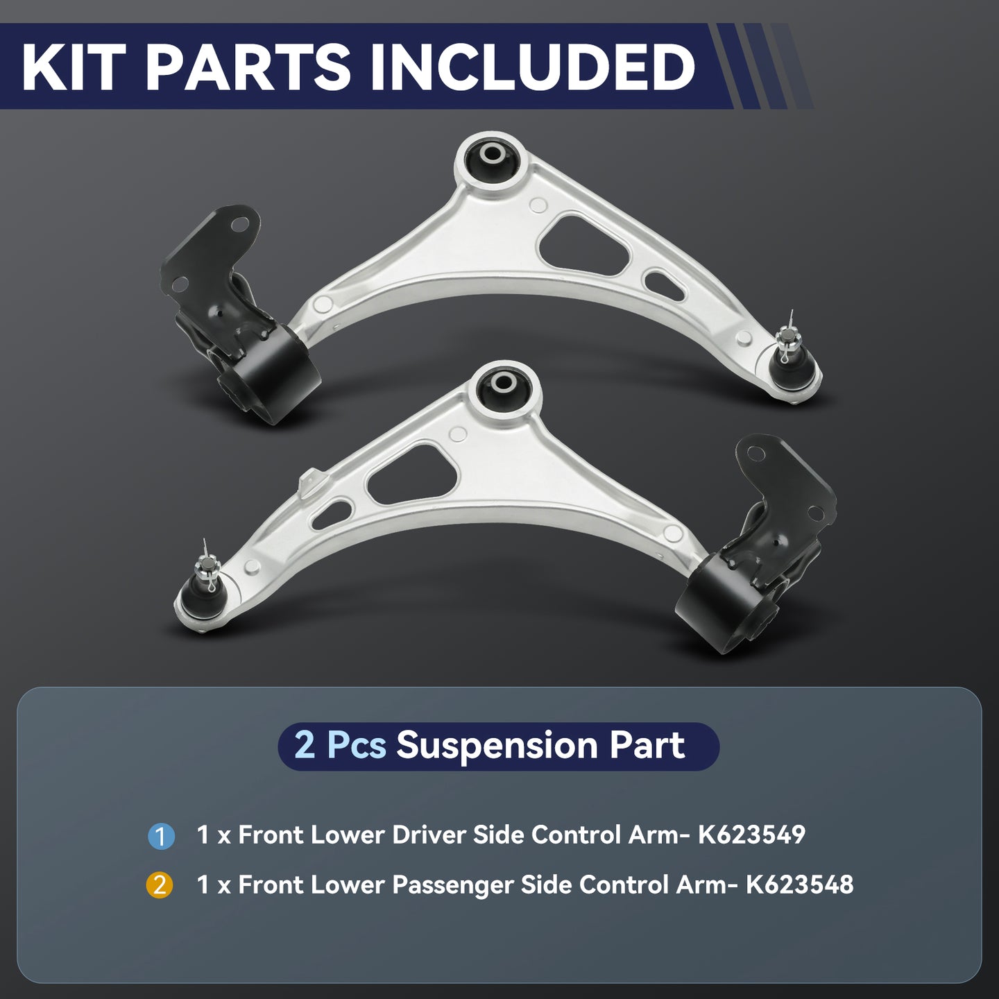 Left Front Lower Control Arm (Driver Side) with Ball Joint & Bushing, 1 *Right (Passenger Side) Front Lower Control Arm with Ball Joint & Bushing